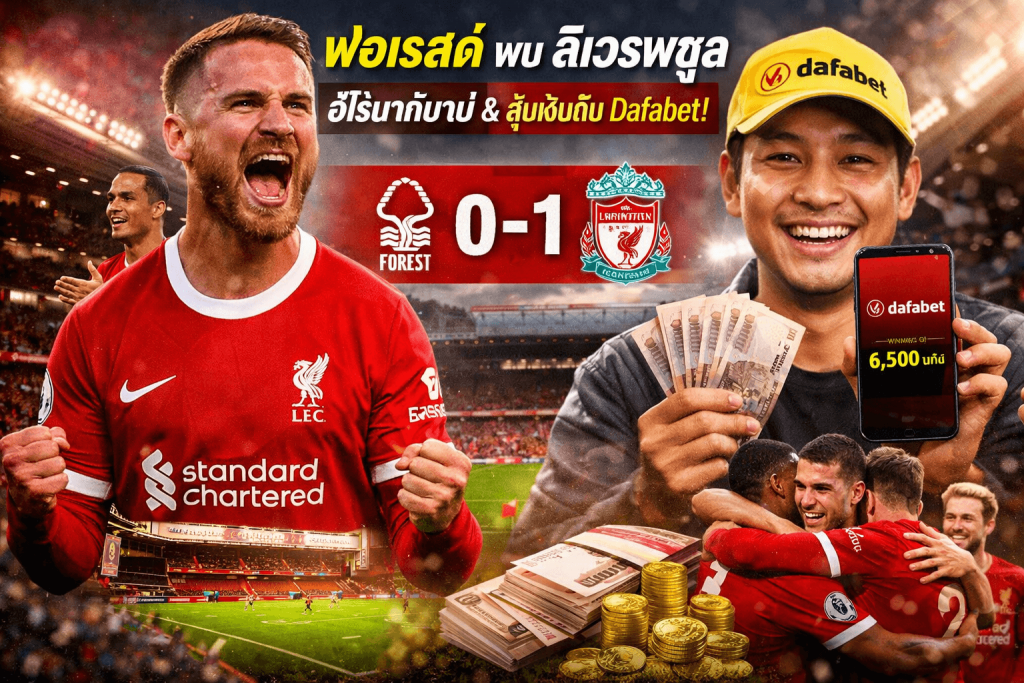 ระหว่างดูเกม ฟอเรสต์ พบ ลิเวอร์พูล มีแฟนบอลไทยคนหนึ่งเล่าในกลุ่มว่าเขาแทง “ลิเวอร์พูลชนะในช่วงทดเวลา” ผ่านแพลตฟอร์ม Dafabet ด้วยอัตราต่อรองสด 6.50 เท่า
